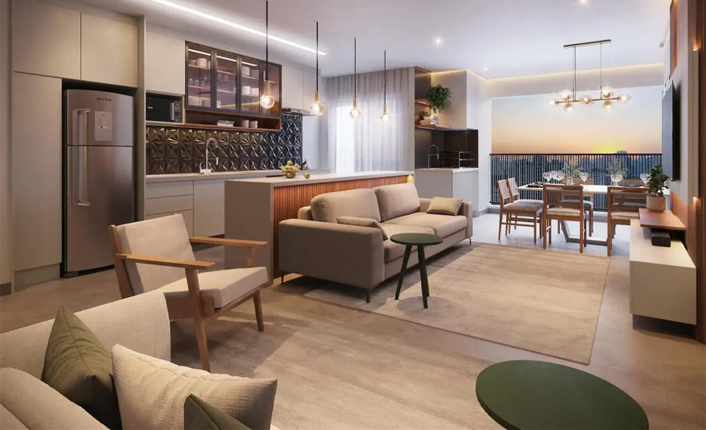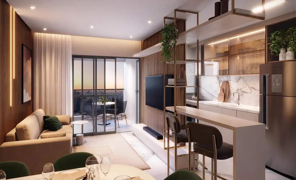 Ambientes integrados, menos áreas desperdiçadas e maior aproveitamento da iluminação natural são características cada vez mais valorizadas. Assim, mesmo apartamentos compactos passam a oferecer uma experiência superior.